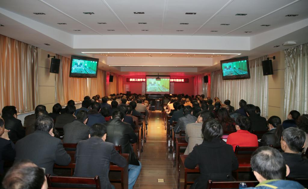 3月16日上午,我院组织党员干部专题学习领会《陕西省委书记赵正永在全省领导干部学习贯彻十八届五中全会精神专题研讨班开班仪式上的动员报告》视频,党委书记崔岩同志主持会议,并对我院学习贯彻全会精神,落实省委、省委高教工委部署提出明确要求。党委中心组成员、全院副科级以上干部110余人参加了会议。