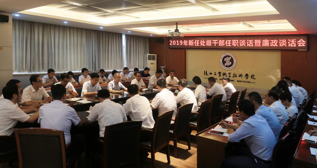 8月28日下午,我院新任处级干部任职谈话暨廉政谈话会在崇文南楼第一会议室举行,党委书记惠朝阳同志出席会议并与新任干部进行任前谈话,纪委书记康强同志与新任处级干部进行廉政谈话,会议由组织部部长王超联同志主持。