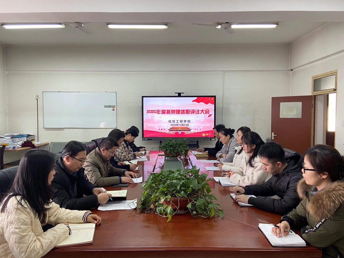 根据陕工院党字〔2020〕101号《关于开展2020年度抓党建述职评议考核工作的通知》要求,12月23日,信息工程学院党总支在崇文楼806召开2020年度抓党建述职评议大会。会议由信息学院党总支书记闫军主持,党委组织部考核组成员甘蓉全程督导,信息学院全体总支委员、支部书记及支部委员参加会议。