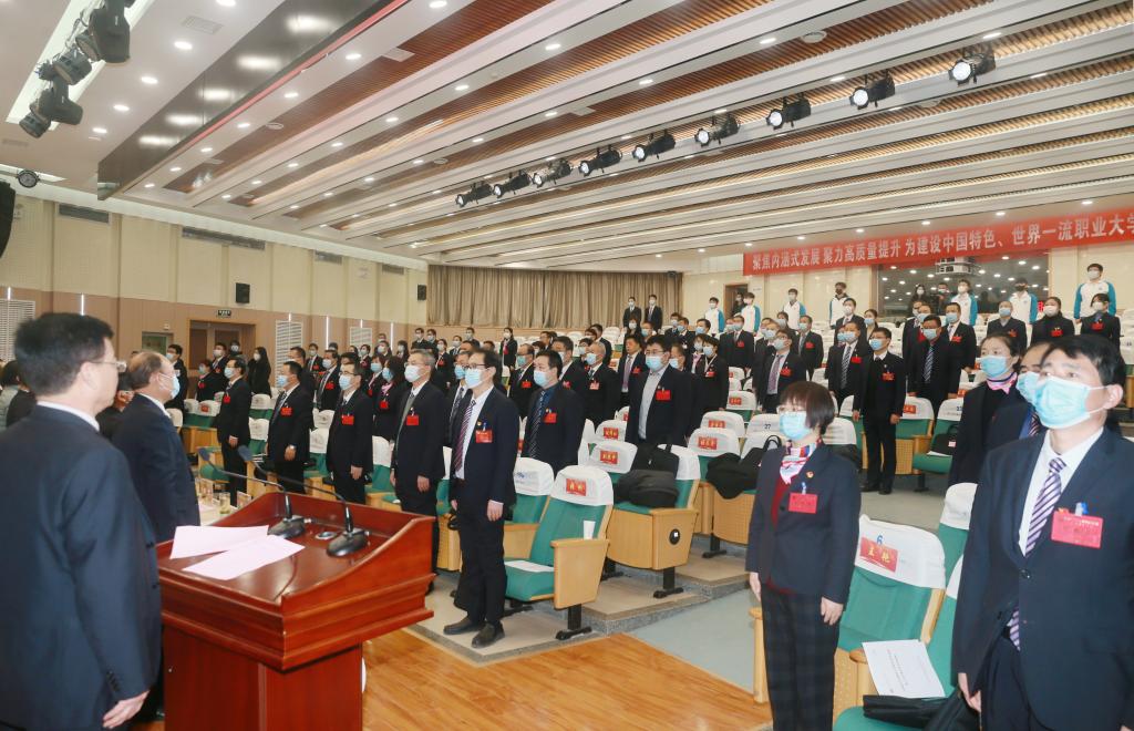 报告表示,在未来发展的关键五年中,学校“建优、建强、建高、建特”的信心和目标绝不动摇,引领职业教育高质量发展、支撑现代产业体系建设的使命和责任绝不动摇,带领全校教职工把学校建设成为新时代职业教育改革发展的先行者、领跑者的底气和勇气绝不动摇。学校将凝心聚力,完成治理能力、育人机制、教学质量、服务水平、条件支撑五大重点任务,开启学校问鼎卓越、引领未来,智造新时代高质量发展华美篇章。