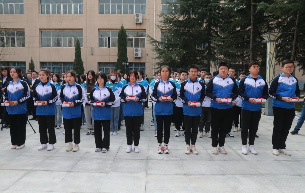 在庄严的《献花曲》音乐声中,国旗护卫队的同学代表学院党委行政和历届师生向王达成同志雕像敬献花环,参加揭幕仪式师生依次向王达成同志雕像献花。仪式最后,学院领导向学生代表赠送纪念了建校70周年系列资料之《王达成传记》。