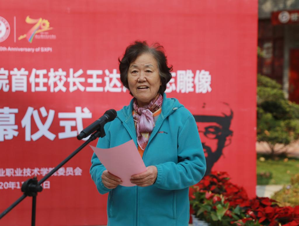 王达成同志女儿王晓玉女士深情追思了父亲励志奋斗的一生。王达成1905年出生于山西离石县柳林镇,他1926年毕业于燕京大学经济系,同年底,受燕京大学地下党委派到清华大学图书馆购置股工作,成立清华大学第一个党组织(党支部)并担任首任书记。1927年四一二反革命政变后,王达成被党组织派往山西,以国民党“左”派的身份从事地下工作,同年秋被阎锡山当局逮捕,以政治罪判刑七年。1932年,在党组织的营救下获释出狱。1936年1月,中共中央决定东征,中央组织部从中央党校抽调六十余名县级干部组成工作队,由王达成负责跟随毛泽东主席带领的总部机关转战晋西南。1950年,王达成任西北军政委员会秘书长、工业部部长、西北财经委员会副主任,西北工业部高级工业职业学校校长;1954年,出任国家纺织工业部副部长,是党的七大代表、八大代表。她讲到:回顾父亲60多年的革命生涯,无论是在敌人的监狱中,或在党内受到不公正待遇时,他始终保持了对共产主义的崇高信念,始终埋头苦干,勤奋工作,勇挑重担,始终对党忠心耿耿。感谢陕西工院师生还记得王达成,还记得老校长,祝愿学校发展越来越好。