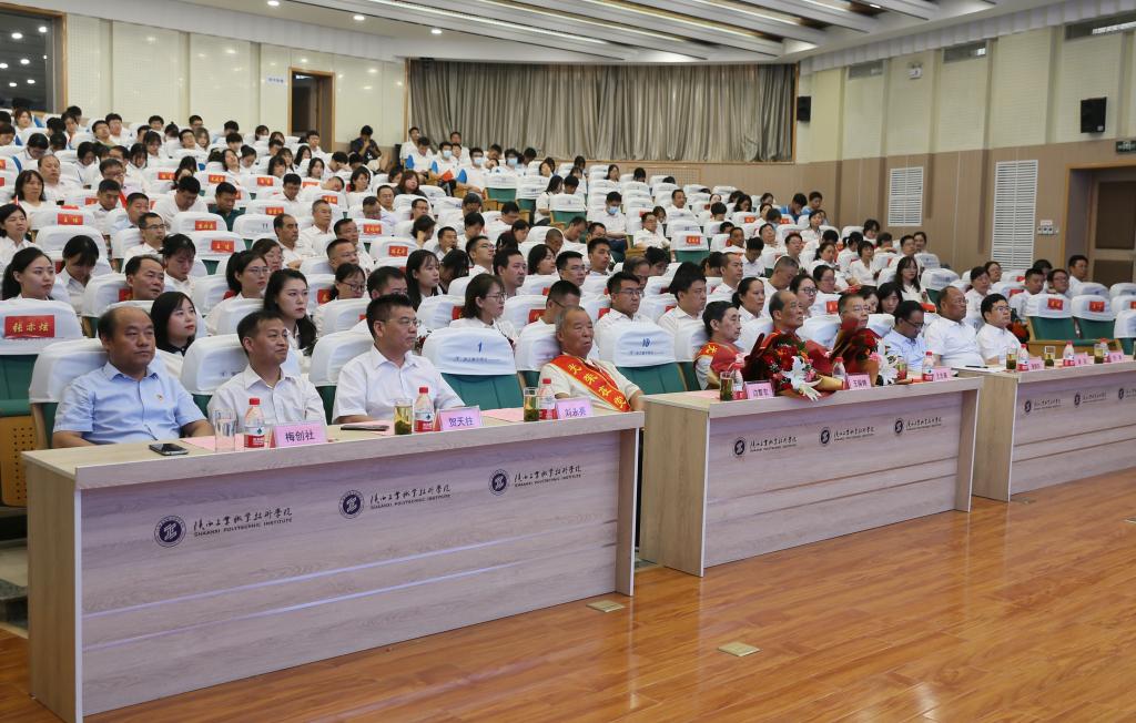 校党委班子成员,各党总支书记、支部书记、处科级干部,荣获“光荣在党50年”纪念章代表,学院“两优一先”代表,新党员代表参加会议。校党委书记惠朝阳讲话,党委副书记田昊主持表彰会议。大会分“致敬荣光 赓续初心”“先锋力量 旗帜领航”“强国有我 不负韶华”“示范引领 踔厉前行”四个篇章进行。