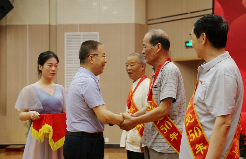 党委书记惠朝阳为“光荣在党50年”老党员颁发纪念章