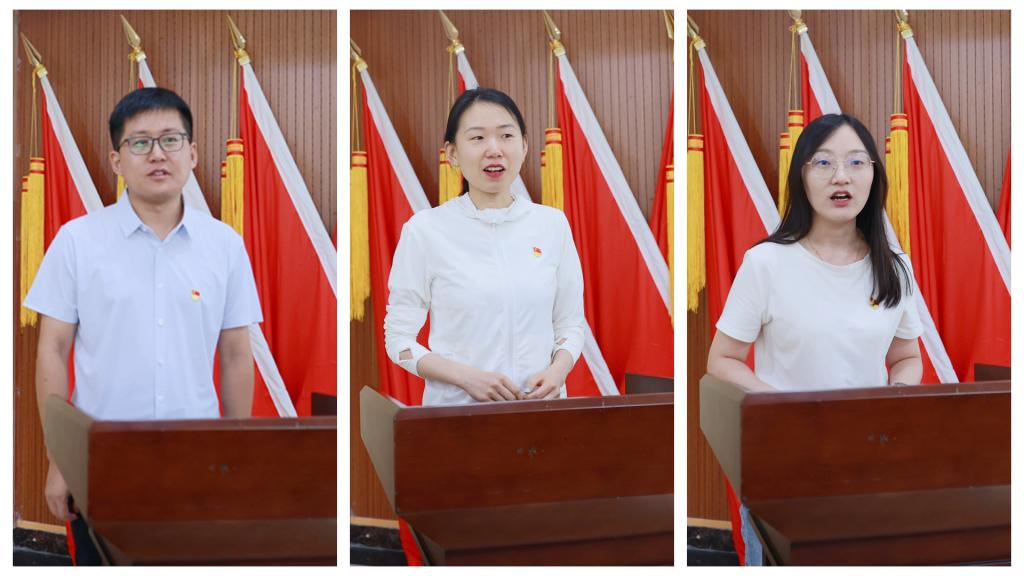 在月亮垭观景台现场教学点,全体人员面向党旗,庄严宣誓,重温入党誓词