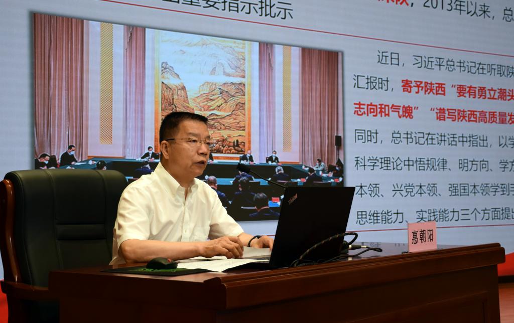 惠朝阳同志紧紧围绕学习贯彻习近平新时代中国特色社会主义思想这一鲜明主题,结合学校发展实际和重点工作,从“旗帜鲜明讲政治,做坚定忠诚的明白人”“增强本领精管理,当引领发展的清醒者”和“俯下身子重落实,成担当作为的实干家”等3个方面深入浅出地阐释了如何高质量抓好党的建设,充分发挥党强大的政治优势和组织优势,实现推动学校高质量发展的目标。