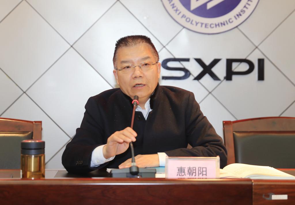 11月12日下午,结合“不忘初心、牢记使命”主题教育,党委书记惠朝阳在崇文楼十层第五会议室为机械工程学院、材料工程学院以及党政办、宣传部、教务处、人事处所有教师党员讲授题为《科学谋划,勇于担当,攻坚克难》专题党课。